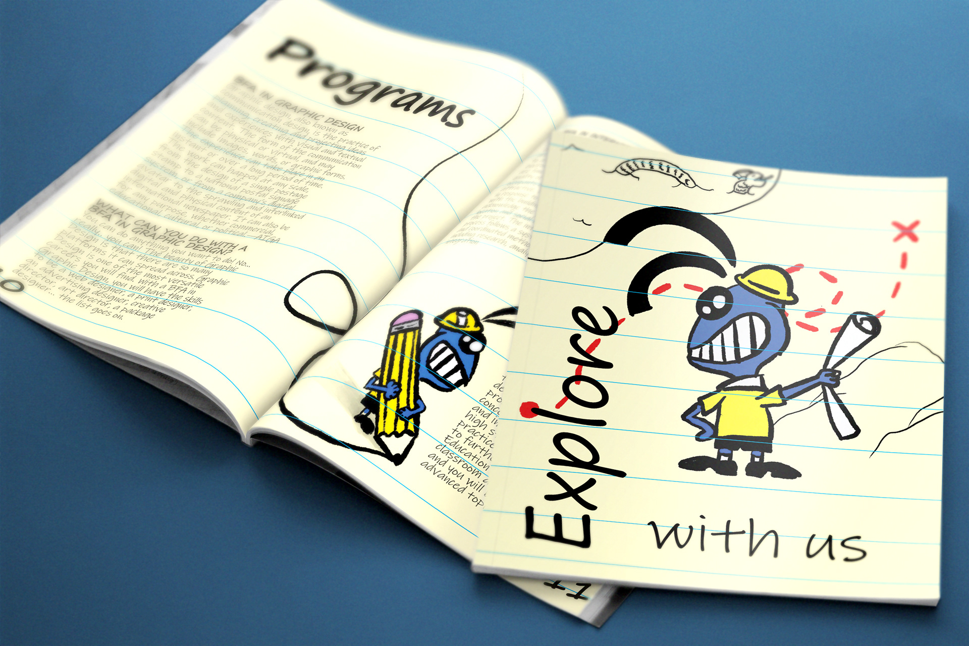 This is my UCO annual report with the theme Explore With Us. I decided to give this report a notebook feel with doodles in it.