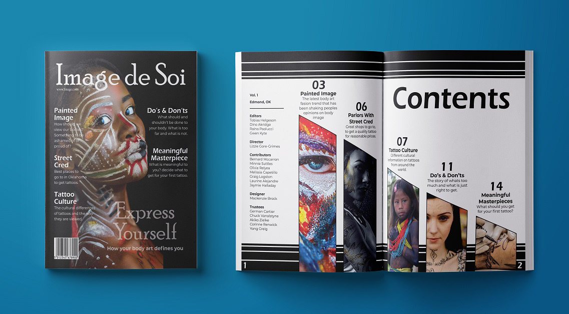 Image de Soi is a body art fashion magazine, which promotes body positivity, loving your own skin, and expressing yourself through body art forms like tattoos and body paint.