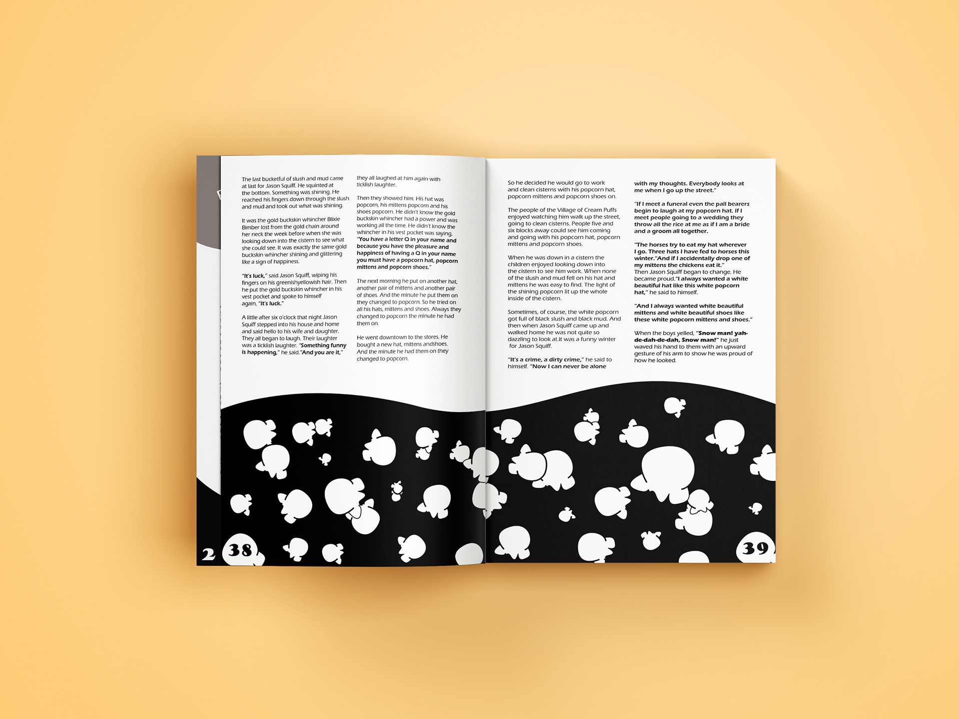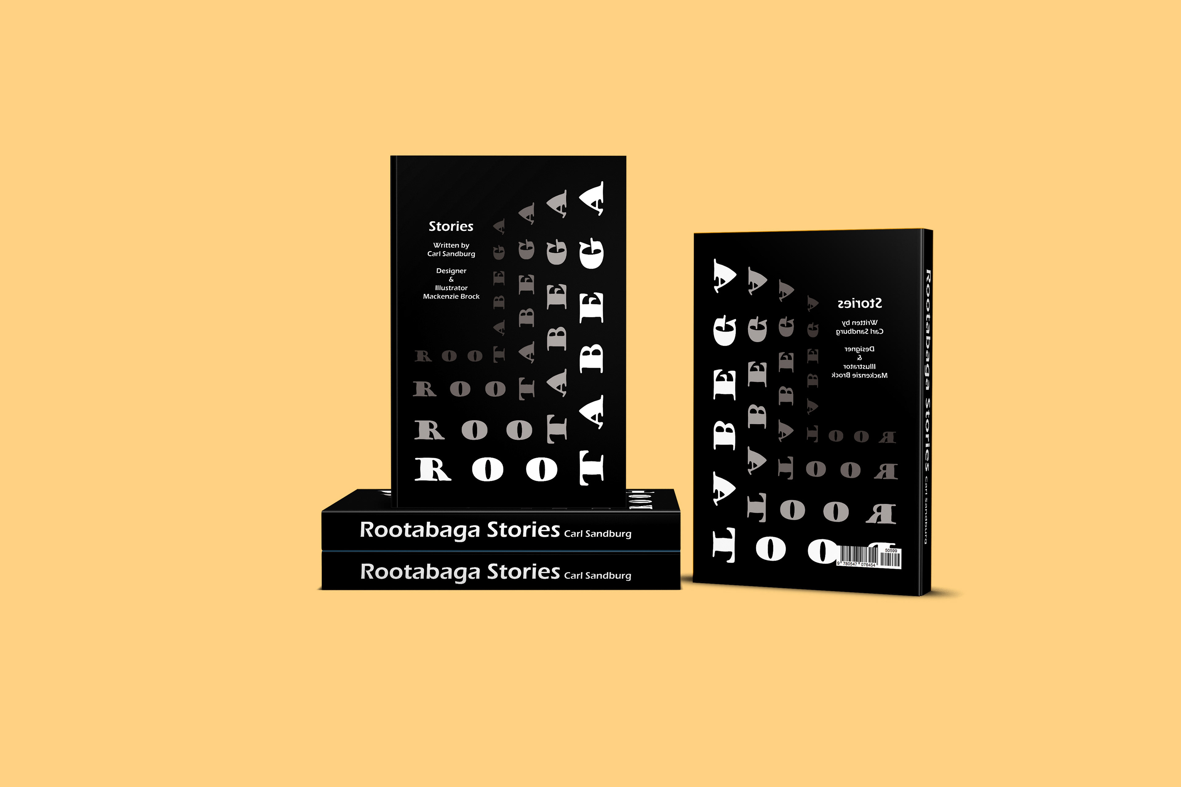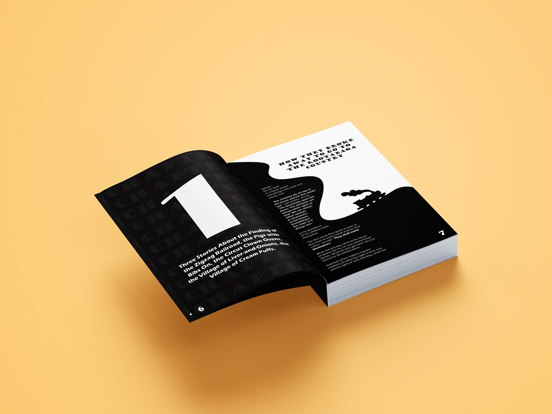 This is my design interpretation for the Rootabaga Stories book by Carl Sandburg. I went with a black and white theme for the Rootabaga Stories with literal and wacky illustrations and page layouts.